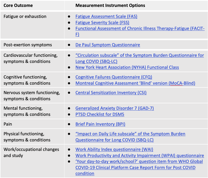 Post-COVID Condition/Long Covid Core Outcome Measurement Set (How to measure?)